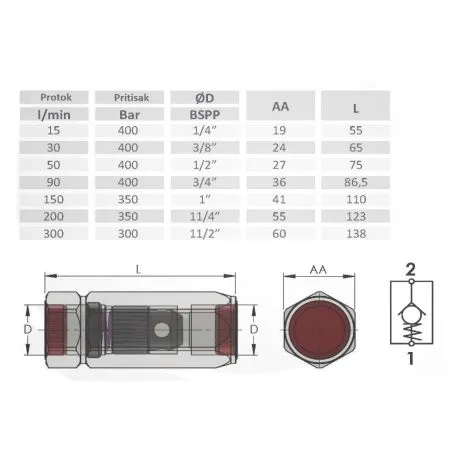 3/8″ Nepovratni ventil propušta protok ulja u jednom smeru a zatvara protok ulja u drugom smeru.